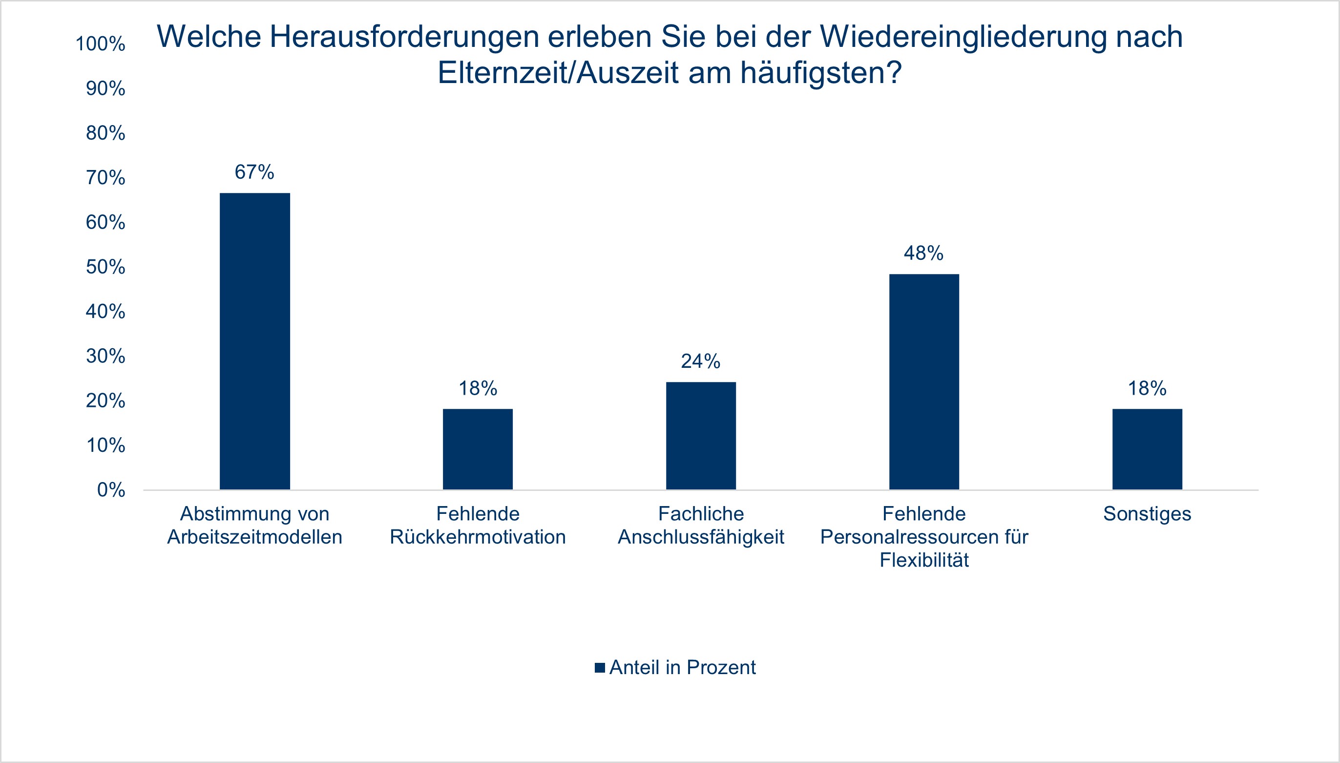 Während Arbeitgeber Fortschritte in Flexibilisierung und Dialog wahrnehmen, erleben Rückkehrende häufig fehlende Strukturen, unklare Kommunikation und mangelnde Entwicklungsperspektiven. Beide Seiten wollen dasselbe – Vereinbarkeit und Verlässlichkeit – doch sie sprechen noch nicht dieselbe Sprache.