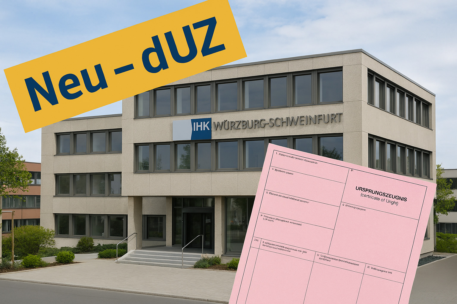 Die IHK Würzburg-Schweinfurt bietet seit längeren Ihren Unternehmern das eUZ-Portal zur Beantragung und zum Druck von Ursprungszeugnissen an. Seit dem 15. September 2025 steht Unternehmen auch das digitale Ursprungszeugnis (dUZ) zur Verfügung .