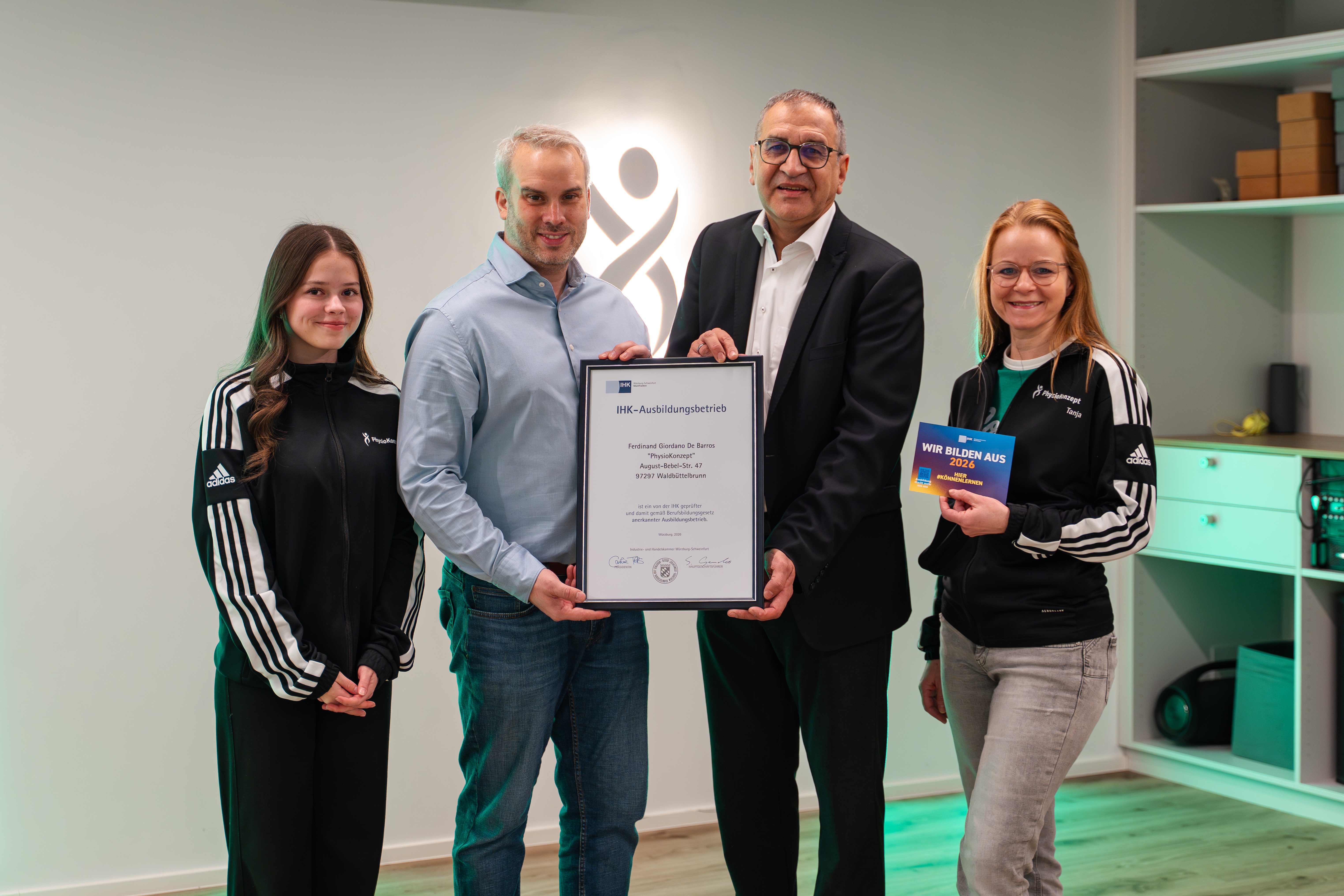 Mitte Januar 2026 hat IHK-Bereichsleiter Stefan Göbel das Unternehmen „PhysioKonzept“ aus Waldbüttelbrunn (Landkreis Würzburg) als anerkannten IHK-Ausbildungsbetrieb ausgezeichnet – stellvertretend für alle rund 2.000 mainfränkischen IHK-Ausbildungsbetriebe.
